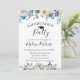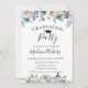 Arranjo floral da aguarela chique no convite azul e neutro empoeirado da festa de formatura. Personalize o estilo de pia batismal do texto, a cor, e o tamanho.