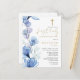 Este cartão-postal de convite floral transparente azul empoeirado para primeira comunhão pode ser personalizado com suas informações em tipografia sofisticada e seu monograma no verso. Criado por Thisisnotme©