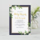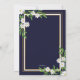 Um convite azul-marinho com finos quadros internos dourados e um painel central branco. É adornado com aglomerados de cantos de margaridas brancas e folhagens. (<a href='https://www.freepik.com/free-vector/floral-wedding-card-template-with-golden-frame_2957360.htm'>Projetado por Freepik</a>). <br/><br/>O cartão é fácil de personalizar com sua redação, fonte e cor da fonte.<br/><br/>Não é exatamente o que você está procurando? Todos os nossos produtos podem ser personalizados para atender às suas necessidades sem custo adicional.<br/><br/>Basta entrar em contato conosco em askcottonlamb@gmail.com.<br/><br/>Produtos coordenados disponíveis: Basta perguntar!
