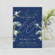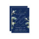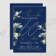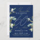 Este convite para 60 anos tem um design na moda feminino com flores brancas com folhas verdes contra um elegante fundo azul escuro e textos personalizáveis modernos escritos à mão. Você também pode personalizar a idade! A parte de trás tem a mesma cor azul profunda. Perfeito para uma mulher com atitude! Também disponível no formato de download digital.