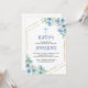 Este elegante convite para um menino do Batismo floral apresenta um aspecto azul de esquema floral, com sotaques dourados e uma cruz, e caligrafia personalizável.