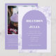 Surpreenda seus amigos e familiares com estes convites de casamento modernos e elegantes, com arco lilás, detalhes botânicos elegantes, foto personalizada, código QR e texto. Adicione facilmente suas próprias informações e imagem clicando na opção "personalizar".