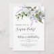 Cartão de convite de aniversário de surpresa para o tema floral russo, com ilustração aquosa de lírios brancos tigre, lavanda e verde.