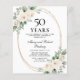 O Elegante convite para o 50º aniversário de casamento apresenta uma estrutura de ouro e dois arranjos de rosas brancas. Todo o texto é editável.
