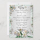 Bonito com flores brancas e anéis de casamento prateados. Este belo convite para o casamento é uma forma moderna e elegante de convidar a família e os amigos para o seu casamento. Personalize a placa alterando o texto nos campos fornecidos frente e verso. Você pode alterar o estilo, o tamanho e a cor da fonte, bem como o tipo e o estilo do papel.