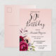 À frente: Um convite moderno e elegante para uma festa de aniversário. Um fundo de rosa ouro-luz. Decorado com flores roxas escuras e arrojadas e rosa cor-de-rosa. Modelos para um nome, data e local da parte. O texto: 50.º Aniversário e o nome é escrito com um script de estilo muito extenso, letras negras. Fundo: fundo rosa dourado colorido.