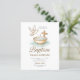 Celebre o dia especial do seu bebê com este convite de batismo amigável ao orçamento, com uma delicada cruz floral em tons azuis suaves e poeirentos. Impresso em uma placa compacta de 4,5" x 5,6", é perfeito para pequenas reuniões ou eventos econômicos. Ideal para batismos, dedicações a bebês, ou batizações com um design limpo e mínimo. Totalmente personalizável com seus detalhes de cerimônia e informações de RSVP.
