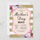 Convite da refeição matinal do dia das mães. Brilho Dourado. Cora o chique floral da flor da aguarela. Brilho Dourado e listras brancas. Cor floral da aguarela cor-de-rosa e roxa. Digitas Printable. Para uma personalização mais adicional, clique por favor "personalizam-no" botão e usam-nos nossa ferramenta de design para alterar este modelo.