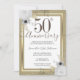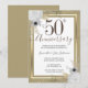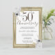 Delicada borda de falso foil com destaques de confete brilhantes na borda superior e inferior. Elegante desenho floral branco, dourado e prateado. Todo o texto é ajustável e fácil de alterar para as necessidades da sua festa. Ótimo design elegante de aniversário de casamento de 50 anos. Disponível em diferentes cores.