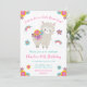 Este convite de aniversário fofo e divertido apresenta uma adorável lama, arco-íris e flores. Isto é perfeito para primavera ou festa de aniversário de verão.