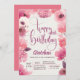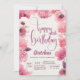 Comece a comemoração de aniversário com este convite floral tendencioso em tons de rosa contra um fundo branco. (FP). <br/>() O cartão é fácil de personalizar com seu texto, fonte, cor da fonte e escolha de seis tipos de papel.<br/>() Não exatamente o que você está procurando? Todos os nossos produtos podem ser personalizados para atender às suas necessidades sem custos adicionais.<br/>() Basta entrar em contato conosco em askpixieprints@aol.com<br/>() Coordenando os produtos disponíveis: