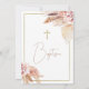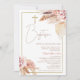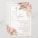 Blush Brown Boho Floral Baptism Invitation Baptism ou convite batizante apresentando dois arranjos florais de blush com grama-pampas, bem como uma cruz e uma estrutura falsa de ouro. Este convite batismo estilo boêmio para uma menina é um acordo para alguém que procura um convite batismo moderno.