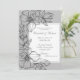 Linda mão desenhada, flores esboçadas em volta de um convite para roteiros. Tão elegante e chique. Eu adoro as cinzas com as flores pretas desenhadas pela mão. O script é feito em uma cinza companheira. Que lindo.