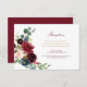 Um cartão de informações de recepção de casamento com um design floral em aquarela em tons de borgonha para o seu casamento. você pode personalizar o texto e a cor para combinar com o tema do seu casamento.