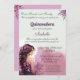 O convite da Elegante Quinceanera com design púrpura chique. Prepare-se para uma noite inesquecível enquanto celebramos uma Quinceañera como nenhuma outra. Nosso convite personalizável permite que você crie uma mensagem personalizada para o evento principal de sua querida filha. Bela escolha e facilmente personalizada para se adequar a qualquer ocasião.