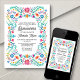 Mariachi, margaritas e memórias! Atirem a festa com este design de festa popular mexicano. O texto colorido e a trabalho de arte (desenhada à mão pela própria Lively Scribe) dão a esta design uma vibração peculiar, mas elegante. Perfeito para o latinx na sua vida. Ou uma festa que é convenientemente próxima de Cinco de Mayo ou Dia de los Muertos. Solicite seus convites impressos e suprimentos de festas ou faça o download de seus convites digitais agora por um dia que eles nunca esquecerão!