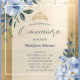 Convite Floral de Quinceañera Dourado Dusty Blue