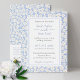 Chic, fresco e brincalhão. Este maravilhoso convite de casamento de dois em um inclui uma solicitação de RSVP no verso com o código Qr. Inclui um conjunto de fontes modernas e de tendências, contra um fundo esbranquiçado e um quadro floral azul e branco empoeirado. O padrão floral é repetido no verso, assim como texto personalizado e código QR. Cheeky e divertido. Personalize para fazer isso seu.