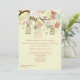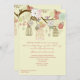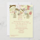 Um convite delicioso que caracteriza ramos de árvore de florescência com birdcages de suspensão e um casal doce do pássaro. Entre as flores lá igualmente estão oscilando corações. Apropriado para o bebê ou os múltiplos do género. O cartão é fácil de personalizar com seus fraseio, pia batismal, cor da pia batismal e escolha de seis tipos de papel.