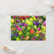 Este convite a um partido do solstício de verão é coberto com as massas das flores em cada cor do arco-íris. Aprecie o grupo floral do amarelo, da laranja, do rosa, do vermelho, do azul, o roxo e o branco do teste padrão em um fundo das folhas verdes. Ao ver isto, um é lembrado de uma pintura impressionista francesa. Uma versão mais clara da imagem está no reverso. Todo o texto na parte traseira pode ser personalizado com sua informação pessoal do partido.