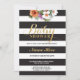 Convite para Chá de fraldas de listras brancas e pretas com texto brilhante dourado e design floral elegante. Perfeito para uma Menina ou Garoto, Gêmeos, Chá da mãe, Chá de Casais, etc. ALTERE O TEXTO PARA ADEQUAR A SUA FESTA E impressão traseiro incluso.