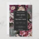 Esta bela, escura e modesta carta de convite para o casamento floral apresenta uma combinação espantosa de peônias, rosa, petúnia e gráficos lilases que podem ser facilmente personalizados com os vossos próprios detalhes únicos.