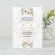 Convite Floral Geométrico Moderno, Branco e Dourad