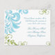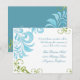 PALETA DE CORES: azul aqua, azul céu médio, verde menta, verde esmeralda. COLEÇÃO DE DESENHOS: Este conjunto de convite de casamento é criado a partir de ilustrações originais de aquarela de Audrey Jeanne Roberts. Delicados e modernos padrões de folhas em redemoinho em azul e verde dançam em torno do convite com um par de libélulas lindamente detalhadas. Há uma fonte elegante de caligrafia manual Ampersand com o nome dos noivos e a data do casamento na frente. O verso tem os redemoinhos pintados à mão que florescem o texto do seu convite. Este é um convite de casamento de dois lados.