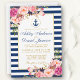 Casamento Náutico Blue Stripes Watercolor Pink Blush Dourado Convite Floral