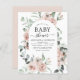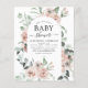 Convites de chá de bebê para primavera ou verão com flores de rosas botânicas cor rosa poeirento e eucalipto - inclui uma tipografia de roteiro bonita e elegante com flores botânicas modernas e folhagens para a celebração especial da futura mãe para a chegada do novo bebê menino ou bebê menina.