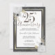 Lindo bordo de falso foil com destaques de confete cintilantes na borda superior e inferior. Elegante desenho floral branco, dourado e prateado. Todo o texto é ajustável e fácil de alterar para as necessidades da sua festa. Ótimo design elegante para bodas de prata. Disponível em diferentes cores.