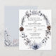 Você planeja seu casamento durante o inverno? Confira este convite de casamento do Pine Cone Floral Wreath no inverno. Ele tem um belo esquema de cor azul de inverno com elegantes florais azuis de aquarela e uma coroa de pinho verde. Você pode personalizar o texto muito facilmente e até mesmo alterar o estilo e as cores da fonte se usar a ferramenta design. Tenha um belo dia de casamento, com o amor Frankie + Marlow.