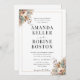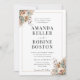 Convide seus hóspedes em estilo com este elegante convite de casamento floral do boho. Apresentando uma estrutura minimalista de linha dourada e flores de cor d'água macia em pastéis mutados, esta design combina a simplicidade moderna com o romance clássico. Perfeito para qualquer estação e totalmente personalizável