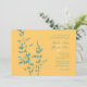 Este elegante e simples convite para o casamento apresenta um fundo na moda amarelo com a imagem gráfica das bonito flores azuis-de-folha-do-campo. O texto totalmente personalizável permite que você use este convite bonito para qualquer ocasião! O RSVP correspondente também está disponível no meu compro.