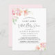 Um convite de chá de fraldas favorável ao orçamento. Este convite virtual para chás de fraldas de bebês apresenta flores impressionistas de aquarela em rosa e coral com sotaques dourados, e "Chá de fraldas virtual" escrito em um roteiro contemporâneo na moda. Você pode personalizar facilmente os detalhes de gênero e chá on-line do bebê, incluindo um link de acesso on-line, informações de registro, onde enviar cartões e presentes ou a opção de abrir on-line e enviar mais tarde, e onde obter mais informações.