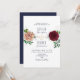 Este elegante convite para o casamento apresenta burgundy pintada à mão e florais essivos com sotaques azuis marinhos e verde delicado armando um filme de coração de ouro. A serifa clássica e a tipografia de script aprimoram seu sentimento romântico, fazer-o uma escolha perfeita para primavera ou casamentos outono com um tema eterno e floral.