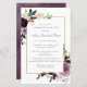 Opção de Papel Orçamental. A celebração elegante de um convite à vida apresenta dois arranjos florais de rosa roxo que decoram um quadro de ouro. O nome da pessoa morta está escrito em um texto tradicional. Todo o texto pode ser facilmente editado para criar uma lembrança pessoal.