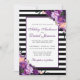 Cartão de Convite para Casamento de Stripes Negra e Preta - Roteiro - Parte Traseira Roxa - Parte Traseira Roxa