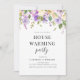 cartão de convite para o aquecimento doméstico de flores roxas aquáticas. O texto e as cores podem ser editados.