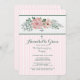 Um belo convite listrado, cor-de-rosa e branco, com um crescente de cinzas cor-de-rosa e de flores aquáticas e folhagem. Perfeito para qualquer sacramento religioso. A cruz em destaque pode ser removida fazer este convite versátil.