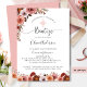 Convite de Batismo de menina em aquarela floral rosa com delicado arranjo floral no canto superior esquerdo e campo de flores na parte inferior do cartão em espanhol. O mesmo convite também está disponível em inglês. Flores em tons deslumbrantes e modernos de rosa blush, rosa poeirento, marfim, pêssego e burgundy. Verso do cartão em rosa blush com detalhe de flor na parte inferior. Convite com seção para detalhes da "Cerimônia" e "Recepção". Produtos coordenados disponíveis. Parte da nossa coleção de casamento e eventos "Heaven in Rose".