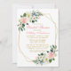 Cartão de Convite para Frames Geométricas de Chá de panela Floral Branco e Dourado Cor-de-Água Rosa - Texto Rosa e Dourado - Parte de Trás Rosa