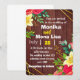 Convide seus entes queridos para seu dia especial com este convite de casamento floral. Apresentando um fundo de madeira escuro, cor de laranja vibrante, vermelho e rosa, e detalhes elegantes da estrutura do ouro, este design combina lindamente a natureza com sofisticação. Perfeito para casais que procuram um tema de casamento quente, rústico e na moda. Totalmente personalizável com seus nomes, detalhes de casamento e mensagem pessoal.