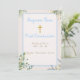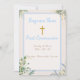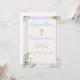 Este convite para uma Primeira Comunhão é um documento especial que anuncia a cerimônia religiosa da primeira comunhão de um menino. É adornada com símbolos religiosos como uma cruz, flores e folhagem. Personalize-o e modifique-o de acordo com as suas preferências.