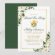 Cartão de Convite de Chá de Festa de Noiva com Aquarela Verde e Branco Floral Dourado - Verso Verde - Escrita Verde e Dourada