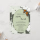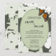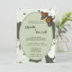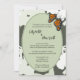 O elegante convite para o casamento floral verde mostra adicionalmente um par de borboletas monarcas que se alimentam. Substitua o texto do exemplo para torná-lo seu. Para obter informações sobre personalização e design, entre em contato com https://kbmd3signs.com/contact/.