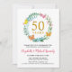 Este convite para o 50º aniversário de casamento apresenta uma delicada coroa floral verde feita de flores, plantas e borboletas selvagens. O convite pode ser facilmente personalizado com suas informações especiais de ouro. A parte de trás do convite mostra suas datas de aniversário em um texto branco elegante em um fundo de ouro. Os materiais de festa e artigos de papelaria correspondentes estão disponíveis na coleção "50º Aniversário de Casamento de Ouros e Fornecimentos".