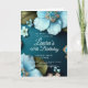 Flores azuis verde deixa brilho dourado Aniversário Convite