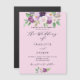 Um fundo rosa. Decorado com flores púrpuras e cor d'água e verde. Personalize e adicione seus nomes e detalhes da festa.