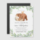 Woodland Greenery Forest Animal Chá de fraldas Convite Magnético. Um chá de fraldas neutro em relação ao gênero com amigos de animais da floresta pintados à mão: um coelho, coelho, coruja, filhote de urso e esquilo enquadrados por uma borda de verde-aquarela. Apresentando uma tipografia em quadrinhos rústica em um fundo branco. Perfeito para bebê, menina, neutro em sexo ou sexo revela chá.